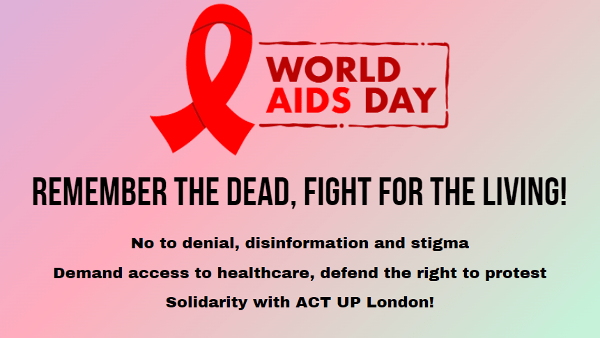 Today, December 1st, is World AIDS Day – held annually since 1988. This year, we want to draw attention to and express our solidarity with those who took part in a die-in protest held by ACT UP London today, echoing a protest conducted in 1989. Stav Bee, ACT UP activist, is quoted by ACT UP London in their press release about the World AIDS Day die-in saying: “It is the 21st century and although a lot has changed, some has not and it’s in urgent need of elimination, via education, laws and radical and direct action. I am talking about the stigma of HIV and AIDS which is still prevalent in many countries including the West. This ignorance and apathy is dangerous and unacceptable. Therefore, as a gay political woman, I support and participate in direct action, radical and using my body. I yearn for an HIV/AIDS free world, full of knowledge, acceptance, kindness and love. For all people of all persuasions affected by the politics of the virus and the virus. And I bellow: ACT UP, Fight back, Fight AIDS!”