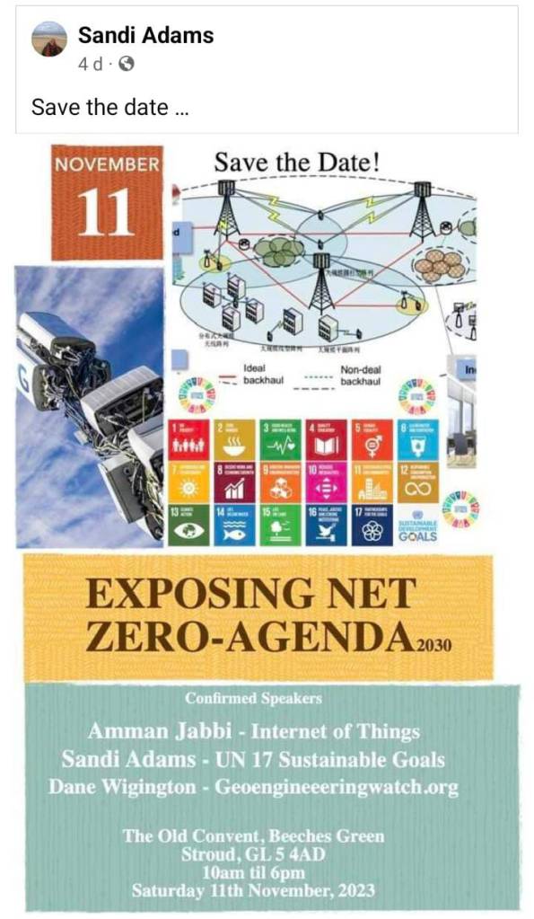 Prior to the March event, Project Libertas hosted an event in November 2023 at The Convent called “Net Zero – the Final Frontier” or “Exposing Net Zero-Agenda 2030” depending on the advert. This event featured notorious climate denier James Delingpole, Sandi Adams – who has hosted an extensive list of antisemitic and neo-Nazi content on her website (as we’ve written about before), and Andrew Bridgen MP – expelled from the Conservative Party for making disgusting and ridiculous comparisons between the COVID-19 vaccine rollout and The Holocaust. Delingpole and Adams were returning to Stroud for return visits to The Old Convent – Delingpole also spoke to a public meeting in October 2022, Adams previously in December 2022.