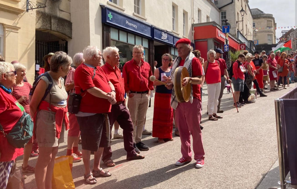 Inspired by the symbolic ‘red line’ protests around the world, on the 16th of August CSSD joined hundreds of others to form a “Red Line For Gaza” stretching the full length of Stroud High Street. The line was a powerful demonstration against the daily atrocities occurring in Gaza by the IDF, a call for an end to the breaking of international law by the Israeli government, and a demand the UK government halts its supply of hardware and training to the Israeli military.