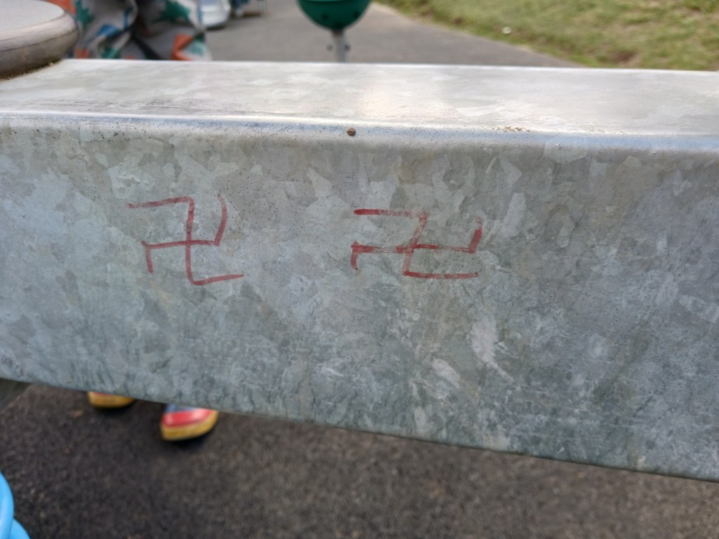 The swastikas below were found in a kids playground in Stroud. They were removed by a member of CSSD. We have found others previously